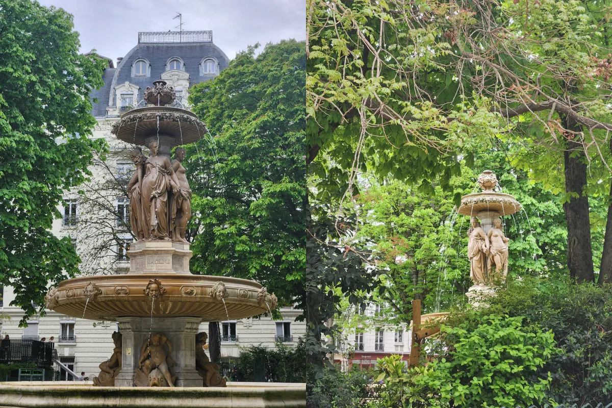 Take a quiet break by the elegant 19th century fountain in this hidden square. Framed by elegant historic buildings, it offers a moment of calm, away from the lively streets of the 2nd arrondissement.